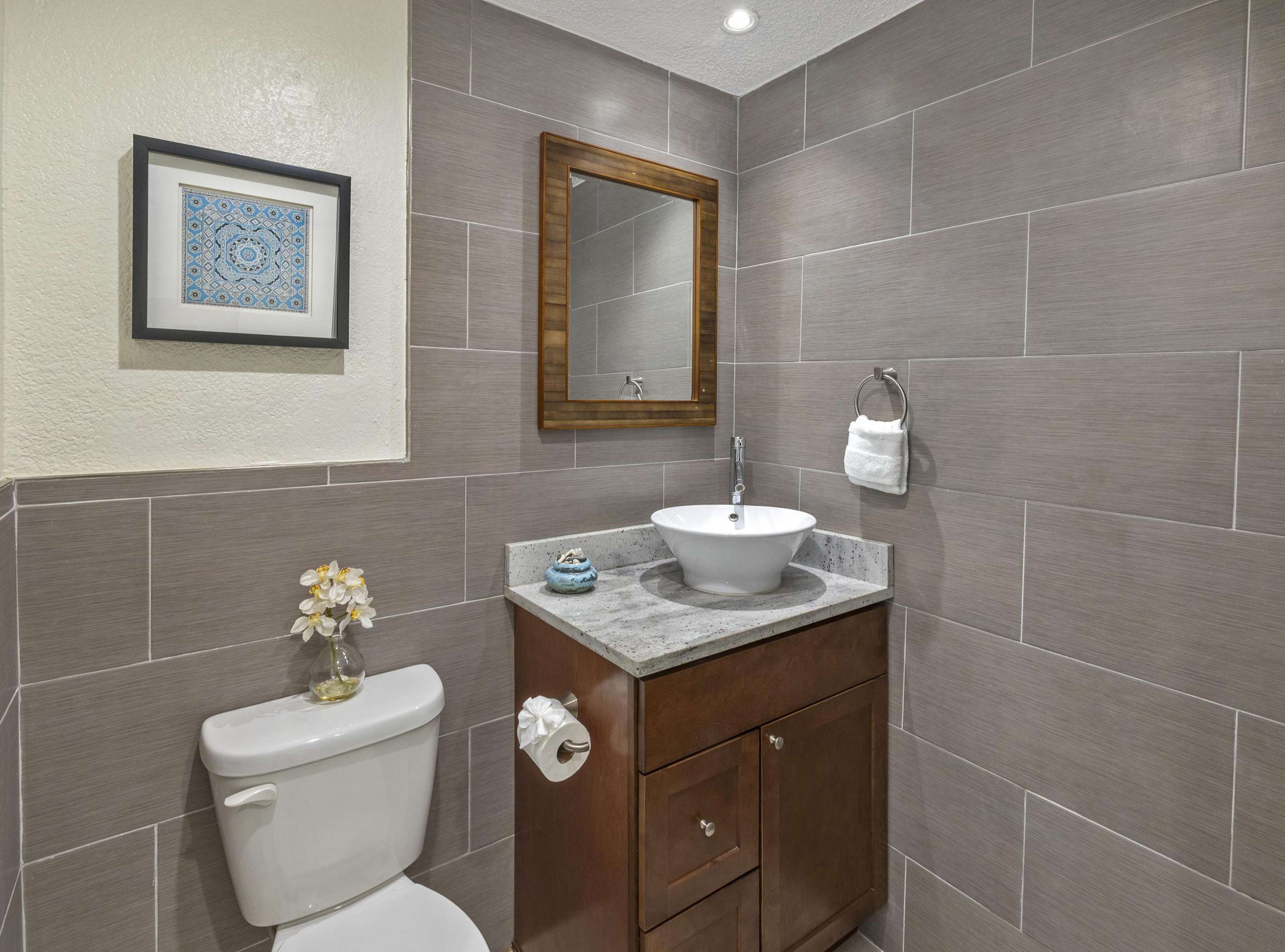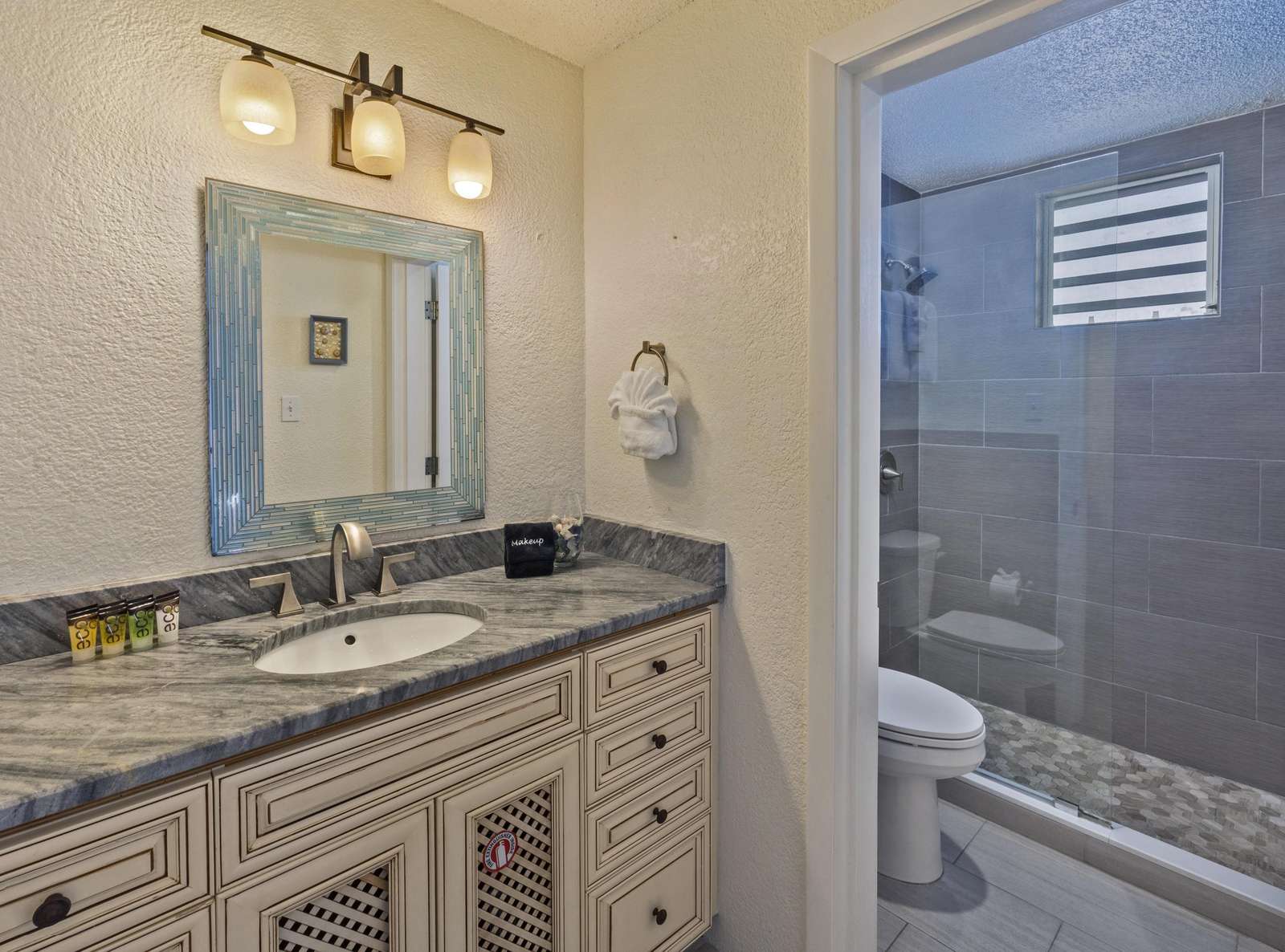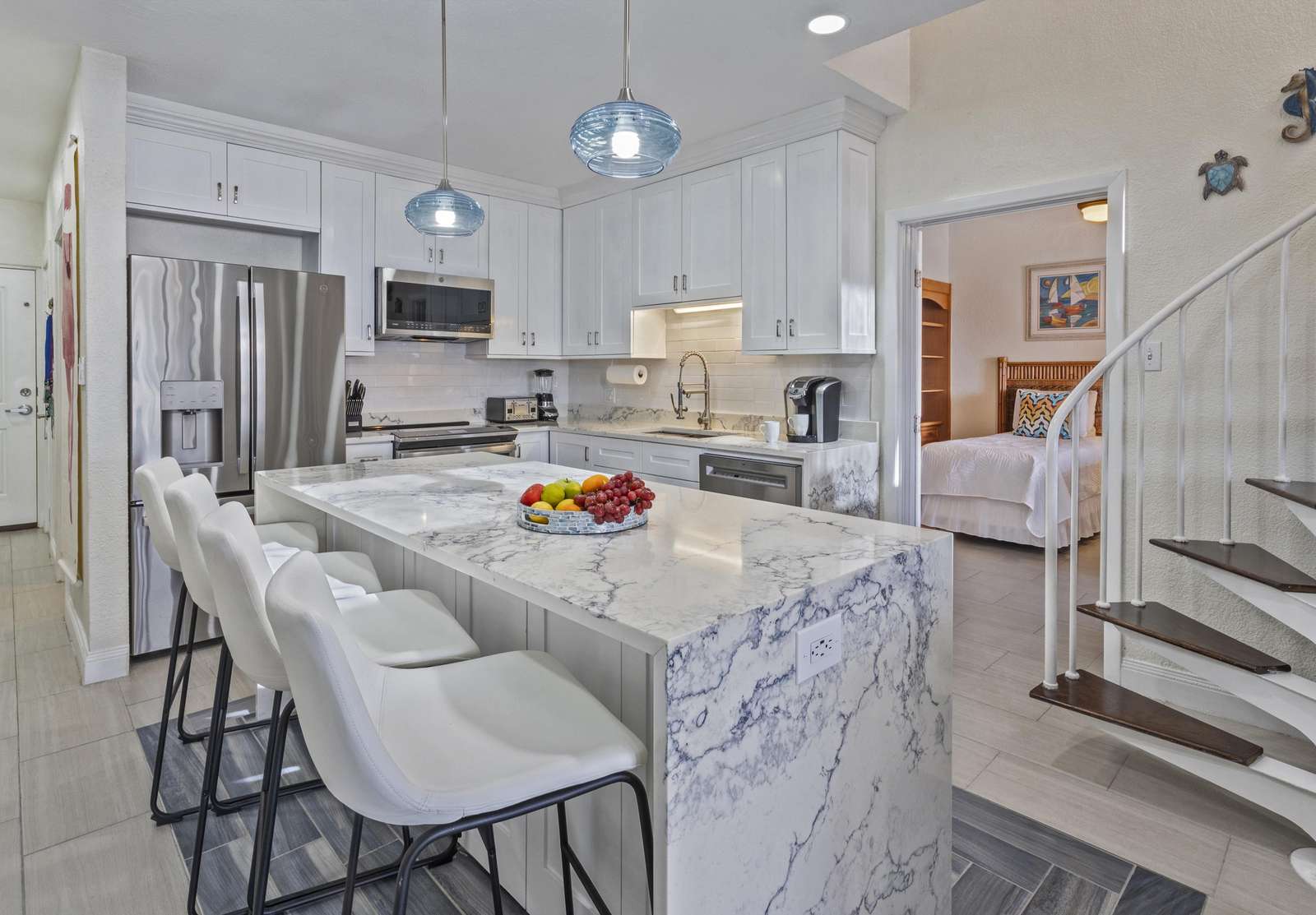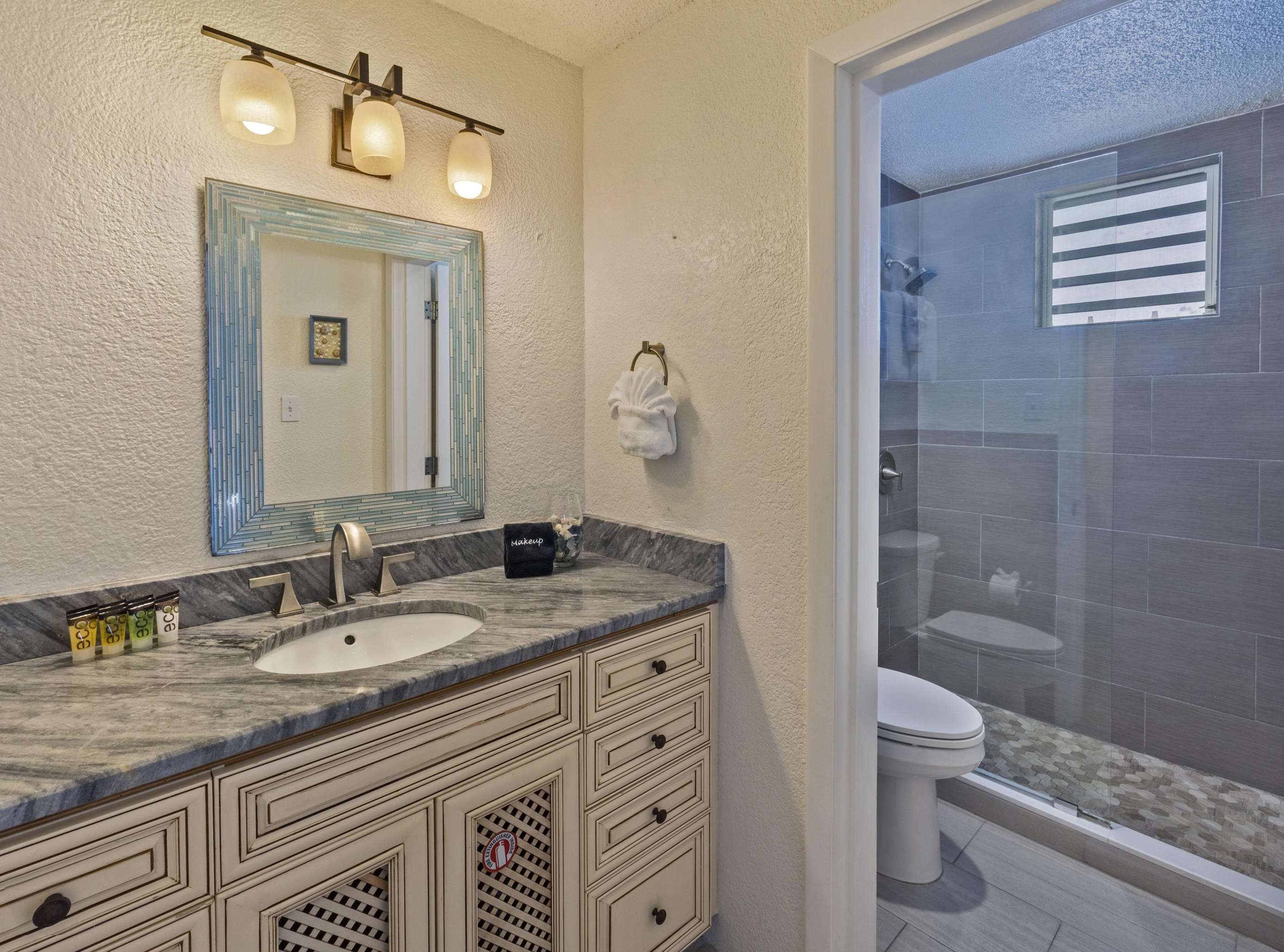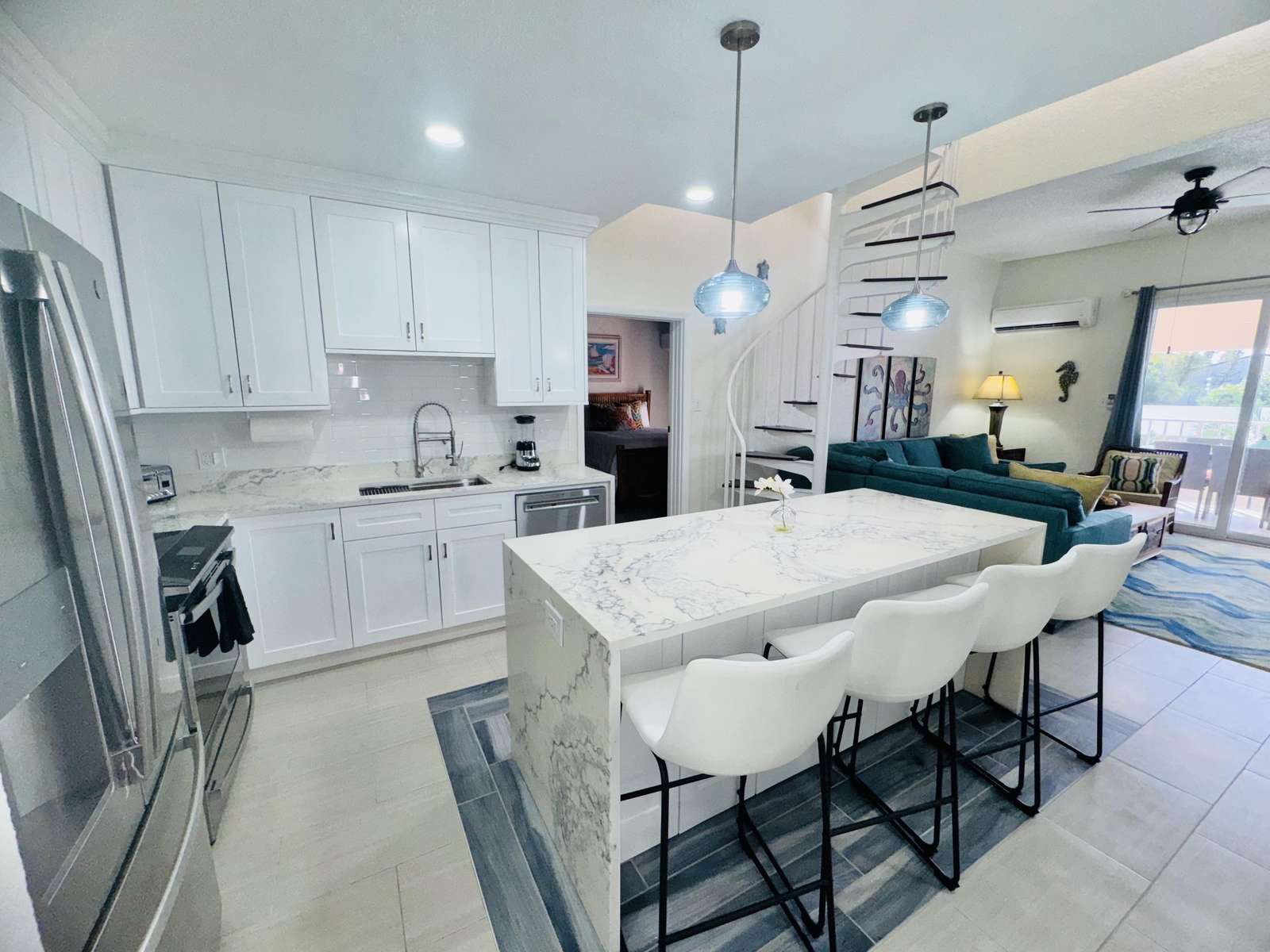 REMODELED MODERN KITCHEN! Prepare for the getaway of a lifetime when you stay at 'Caribbean Dream' in St. Thomas! Only seven steps up to this spacious condo featuring 3 bedrooms, 3.5 bathrooms, as well as private balconies from each bedroom, and outdoor dining on the balcony for eight. Completely remodeled and decorated with brand new furniture and accessories, this beautiful condo provides all the comforts of home in air-conditioned comfort. Caribbean Dream is located at the Elysian Beach Resort, which boasts an awesome outdoor pool with a waterfall grotto and a separate large jacuzzi, two restaurants, a pool/beach bar, beach access, and a tennis court! It is just a short walk (approx 180 steps) over to the beautiful beach dotted with towering palm trees and many beach chairs for your lounging. A great swimming and snorkeling area makes this perfect for everyone, young and old!
